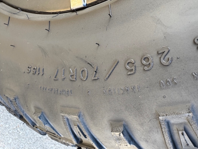 Tire Brand: GoodyearTread Remaining: 80%Wheel Size: 17 inchWheel Type: AluminumTire Size: 265/70R17Wheel Condition: Very Good